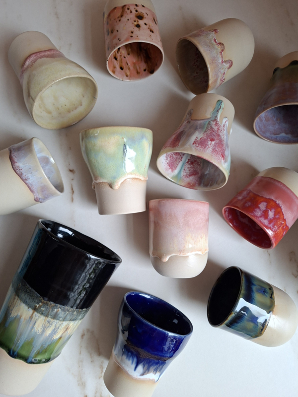 Tijdens deze workshop gaan we een aantal kopjes en eventueel een vaas glazuren (extra toe te voegen). Er is keuze uit een groot assortiment glazuren en onderglazuren, we brengen de glazuren aan met de kwast. Je maakt zelf keuzes voor het ontwerp en de kleur zodat de items helemaal naar jouw wens worden.